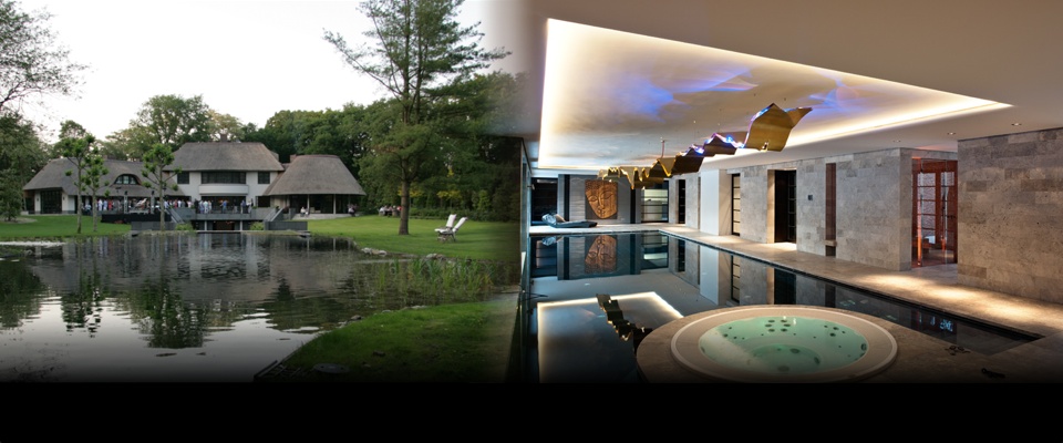 Dit woonhuis midden in het Gooi is onderworpen geweest aan een zorgvuldig en lang ontwerpproces. Tot en met de laatste steen is nagedacht hoe alles in harmonie met elkaar kan zijn. Het extreem grote huis is deels verborgen onder de grond. Toch zijn ook de sport- en yoga ruimtes in de kelder open en licht. Het zwembad loopt galant de tuin in welke naar een masterplan van